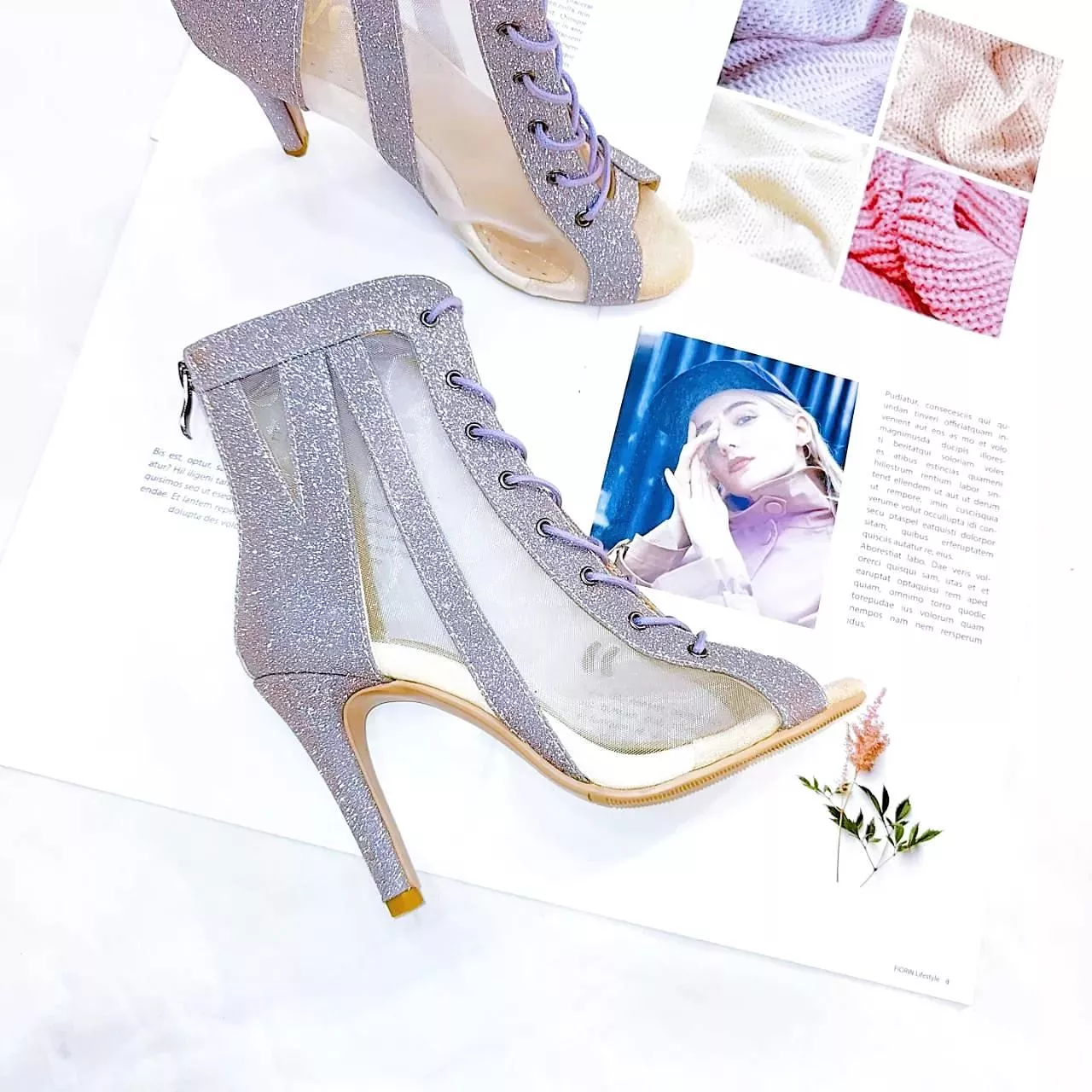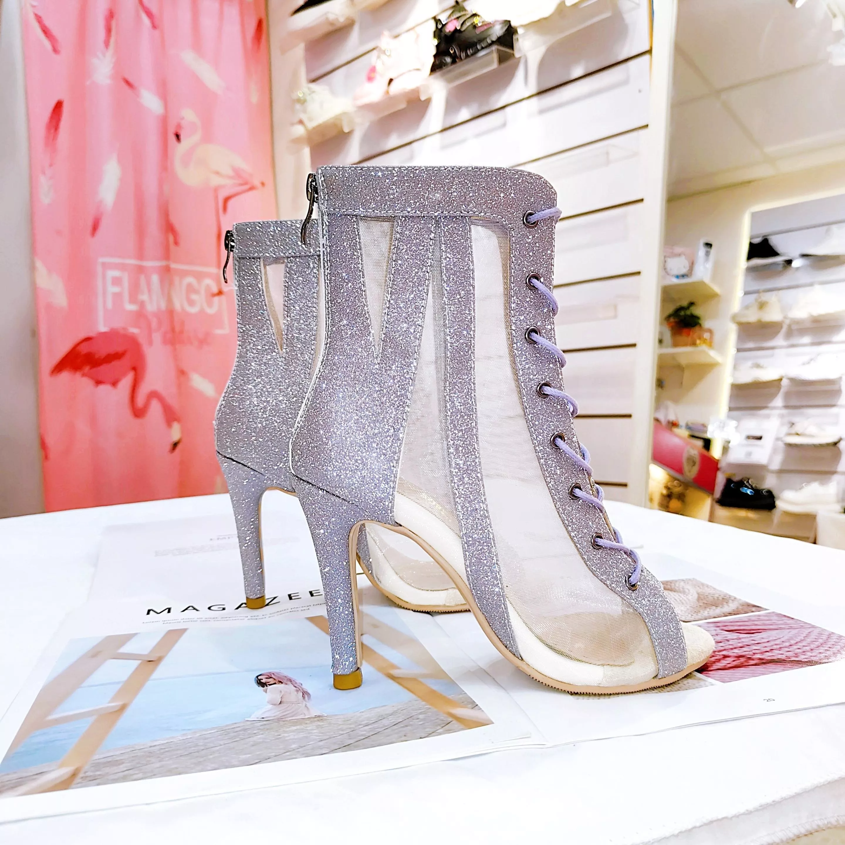 星河 - 網紗x星燦拉鏈綁帶靴